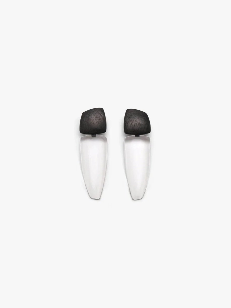 The Joa Earrings balance ebonized acacia wood with green cast acrylic to create a clean interplay of texture and light. Crafted in Denmark, the carved wood top brings warmth and depth, while the tapered acrylic drop introduces a sleek, modern profile.